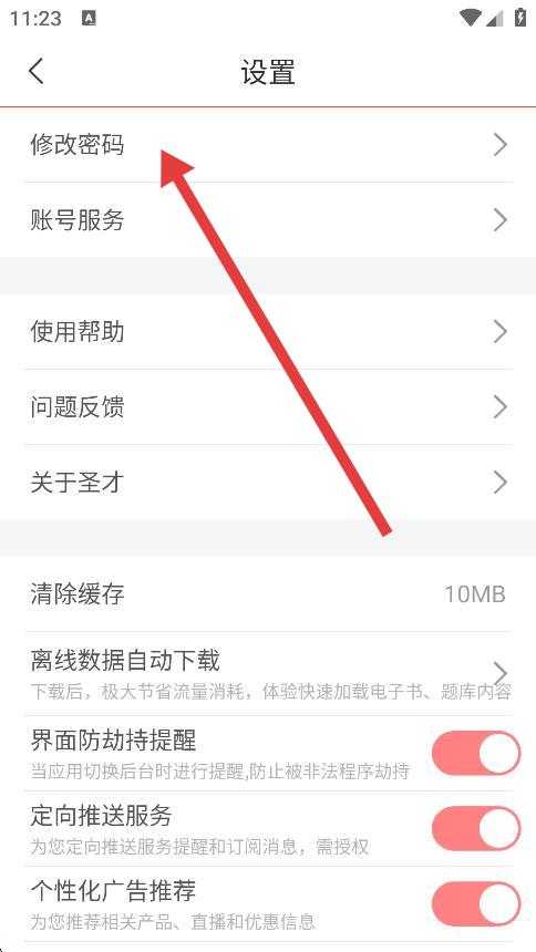 3、進入設(shè)置頁面后,找到并點擊修改密碼選項。