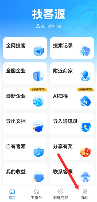 1、打開(kāi)找客源APP,點(diǎn)擊右下角我的,進(jìn)入個(gè)人的頁(yè)面。