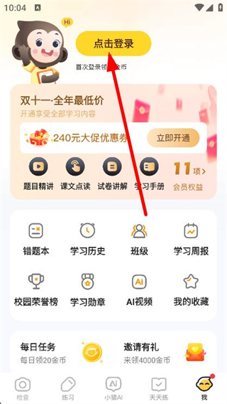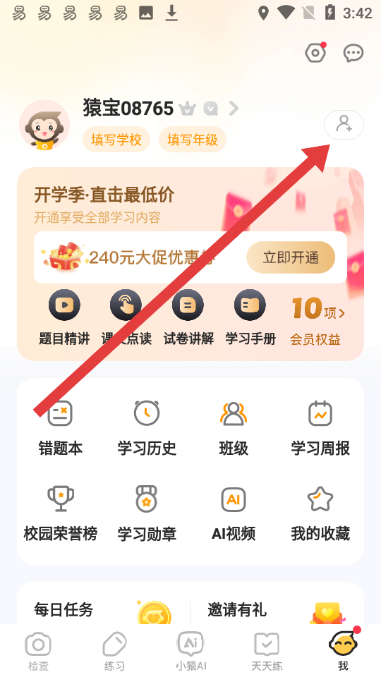1、打開小猿口算APP,點擊底部導航欄我,進入個人中心頁面,點擊頭像右側人像圖標。