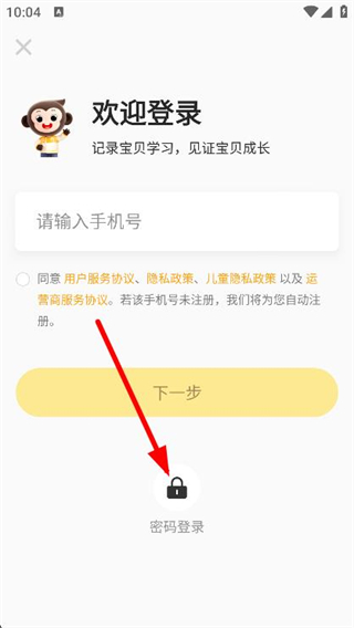 3、在登錄頁面點擊密碼登錄,進入密碼登錄頁面。