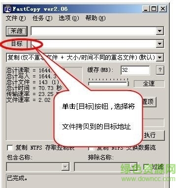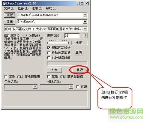 6.選擇好文件來源與目標(biāo)后,我們就可以單擊[執(zhí)行]按鈕來進(jìn)行復(fù)制操作。