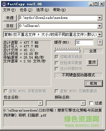 磁盤間相互拷貝文件是司空見慣的事情,通常情況都是利用windows自帶的復(fù)制粘貼功能來實(shí)現(xiàn)的。這樣做在數(shù)目較小的情況下倒也沒什么問題,但是數(shù)目較大時,系統(tǒng)自帶的復(fù)制功能就有些力不從心了。這時就需要fastcopy。一個424mb的電影其拷貝時間僅為21秒,傳輸速度達(dá)到了21mb/秒,不知比totalcopy之流快了多少倍。