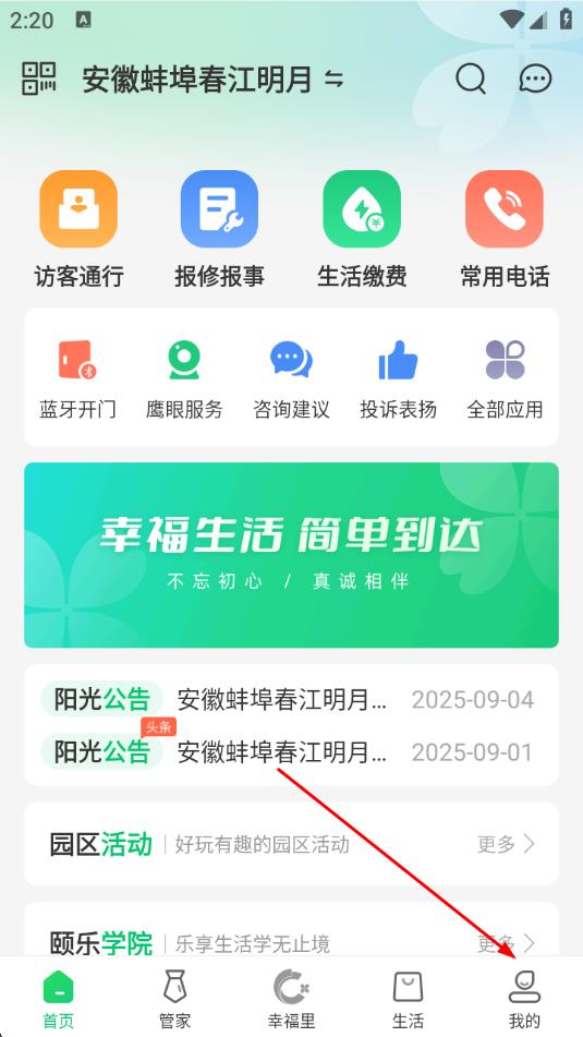 1、打開綠城生活APP,點擊底部導航欄中我的選項。