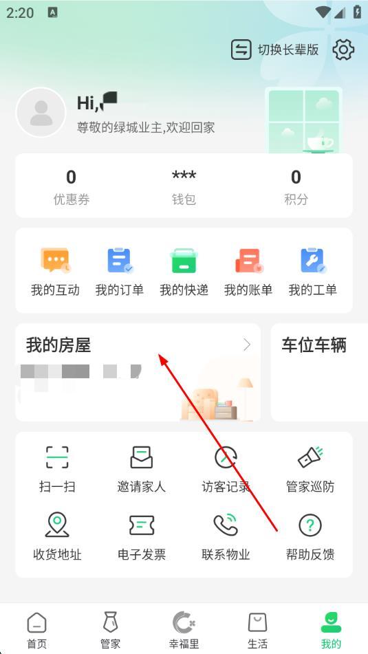 2、在“我的”頁面,找到我的房屋板塊并點擊進入。