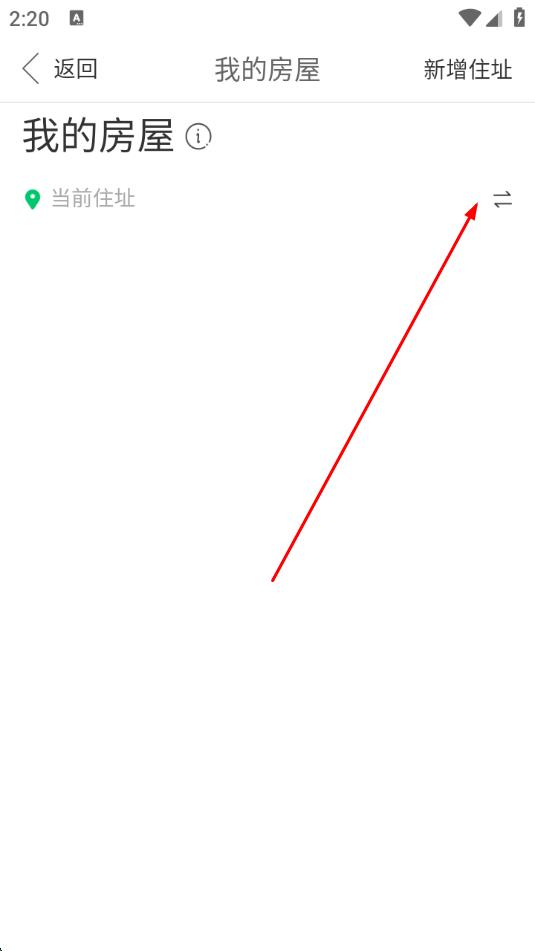3、進入我的房屋頁面后,點擊當前住址右側的箭頭圖標。