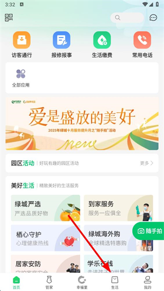 1、在綠城生活app首頁點擊生活選項,進入生活頁面。