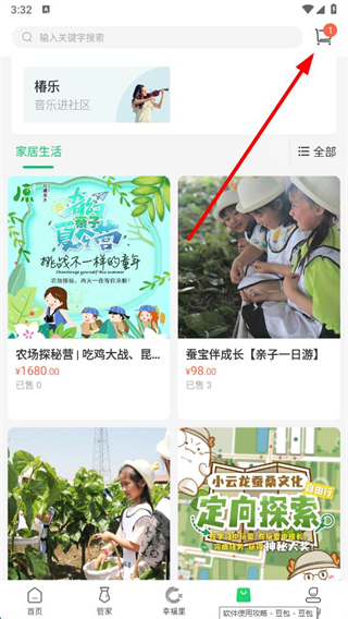 2、在生活頁面點擊右上角購物車圖標,進入購物車頁面。