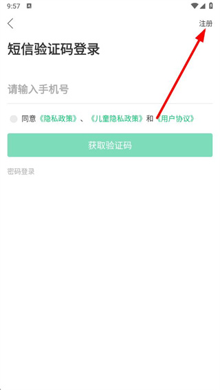 2、進入登錄頁面后,點擊右上角的注冊選項。