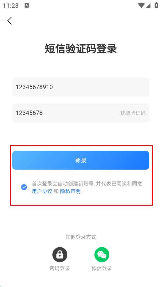 4、勾選同意用戶協(xié)議和隱私聲明”,然后點(diǎn)擊“登錄”按鈕,完成登錄操作。