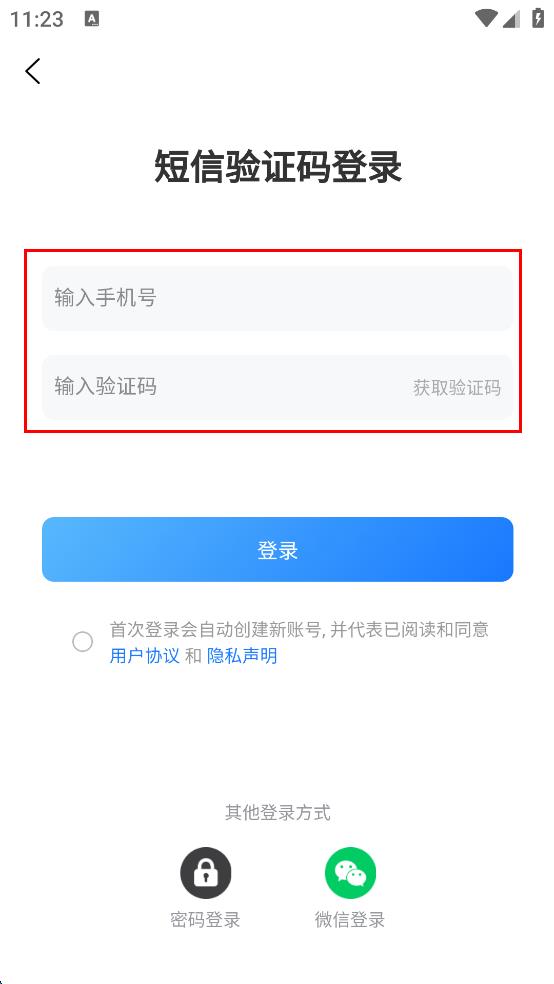 3、在短信驗(yàn)證碼登錄界面,依次在“輸入手機(jī)號(hào)”和“輸入驗(yàn)證碼”輸入框中,填寫好手機(jī)號(hào)和驗(yàn)證碼。