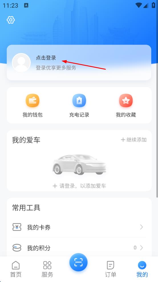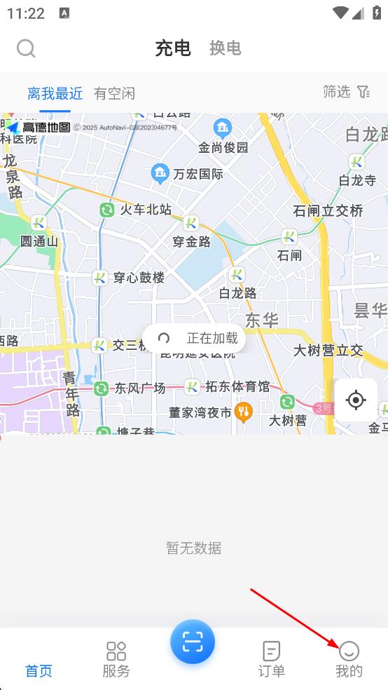 1、打開充電服務(wù)軟件,點(diǎn)擊頁面底部最右側(cè)“我的”選項(xiàng),進(jìn)入個(gè)人頁面。