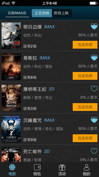 與影城前臺(tái)售票系統(tǒng)同步,支持全國百家影城實(shí)時(shí)在線選座、快捷購票