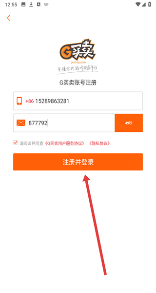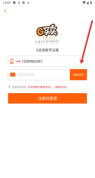 2、點擊“登錄/注冊”,進入G買賣賬號注冊頁面。