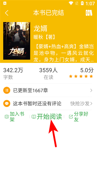 2、在書(shū)籍詳情界面,點(diǎn)擊開(kāi)始閱讀按鈕,進(jìn)入閱讀提示界面。