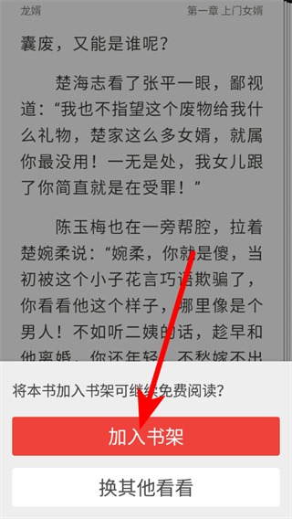 3、在閱讀提示界面,點(diǎn)擊加入書(shū)架按鈕,即可將小說(shuō)加入書(shū)架。
