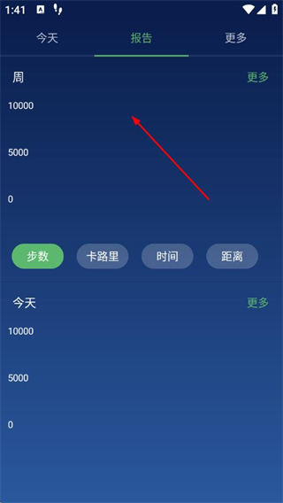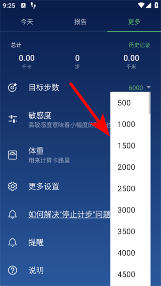 2、在更多頁面找到目標(biāo)步數(shù),點(diǎn)擊其右側(cè)下拉箭頭,展開步數(shù)列表。