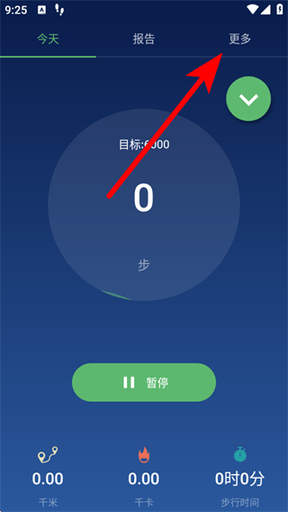 1、打開計(jì)步器卡路里APP,點(diǎn)擊右上角更多,進(jìn)入設(shè)置頁面。