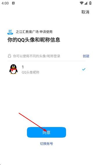 2、在QQ授權(quán)頁面,點(diǎn)擊同意,授權(quán)之江匯使用信息。