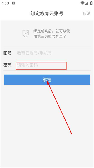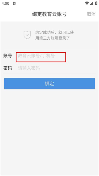 3、進(jìn)入綁定教育云賬號頁面,輸入教育云賬號/手機(jī)號。