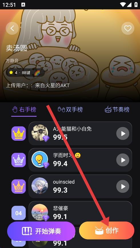 3、進(jìn)入該曲目詳情頁(yè)面后,點(diǎn)擊右下方的創(chuàng)作按鈕。