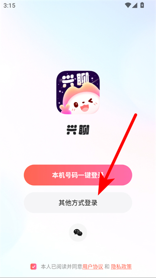 1、打開(kāi)興聊APP,點(diǎn)擊其他方式登錄,進(jìn)入手機(jī)號(hào)登錄頁(yè)面。