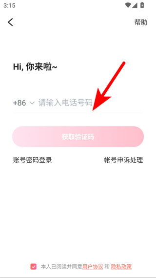 2、在手機(jī)號(hào)登錄頁(yè)面輸入電話號(hào)碼,點(diǎn)擊獲取驗(yàn)證碼。