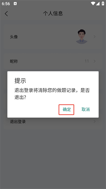 4、之后再點擊之后就會彈出一個提示的窗口,提示你退出窗口就會清空你之前的一切做題記錄內(nèi)容,然后繼續(xù)點擊【確認(rèn)】,即可立即完成賬號的登錄退出操作了。