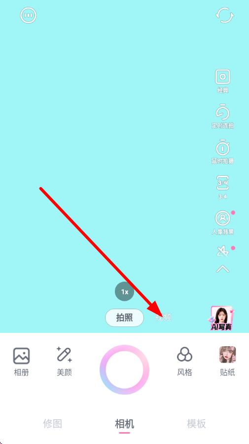 2、在拍攝界面中,點擊拍照按鈕旁邊的視頻選項,切換到視頻錄制模式。