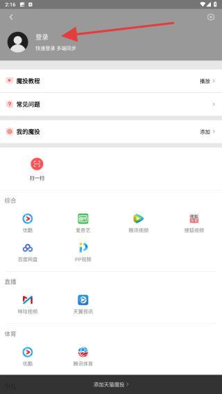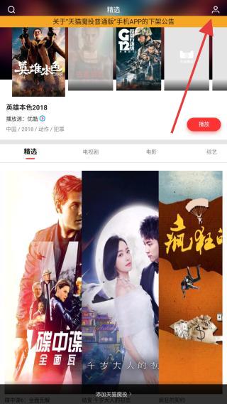 1、打開天貓魔投APP,在首頁內(nèi)點擊右上角人像的圖標(biāo)。
