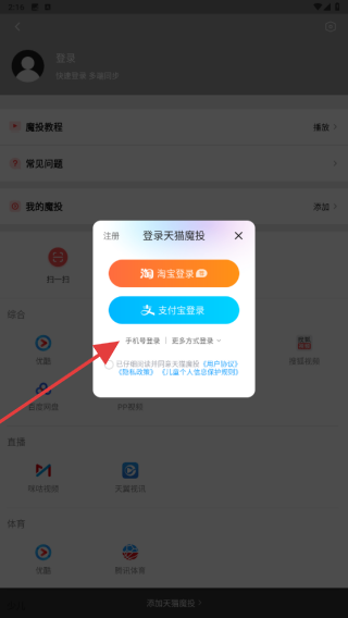 3、在彈出的登錄方式中,點擊手機(jī)號登錄。