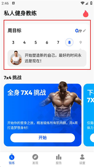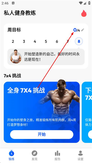 1、打開私人健身教練APP,點擊周目標右側(cè)的編輯圖標。