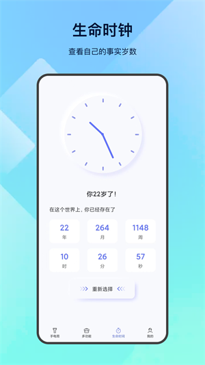 - 生命時(shí)鐘可以輕松查看自己的事實(shí)歲數(shù),讓你輕松掌握存在時(shí)間;