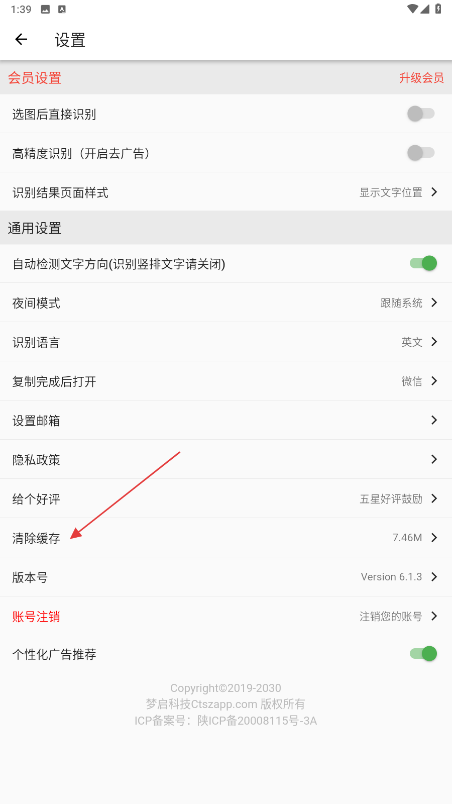 3、在設(shè)置的界面內(nèi),點(diǎn)擊清除緩存的按鈕。