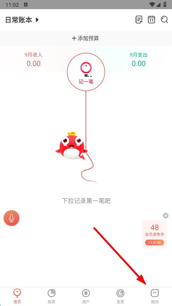 1、打開有魚記賬應(yīng)用,點(diǎn)擊底部導(dǎo)航欄中的我的選項(xiàng),進(jìn)入個人相關(guān)界面。