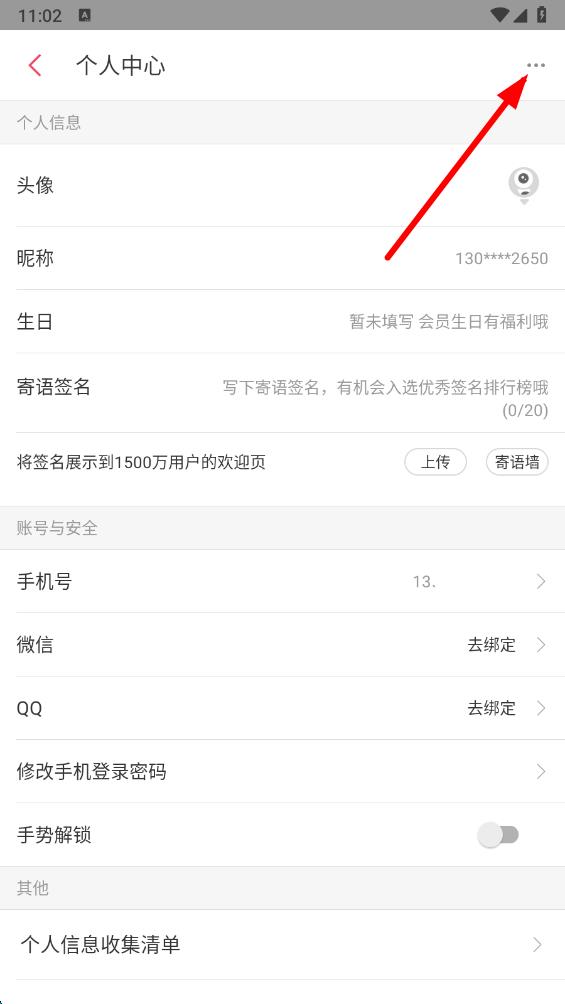 3、在個人中心頁面,點(diǎn)擊右上角的更多圖標(biāo)。
