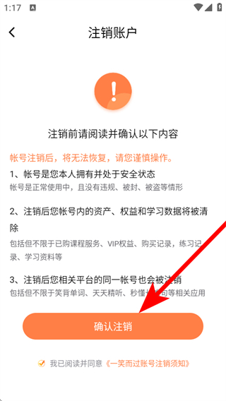 4、在注銷賬戶說(shuō)明頁(yè)面,點(diǎn)擊確認(rèn)注銷,完成賬號(hào)注銷操作。
