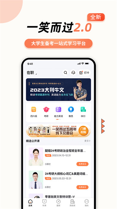 涵蓋高考、四六級(jí)、考研、專四專八、能力英語(yǔ)等超精品課程,從備考到能力提升。