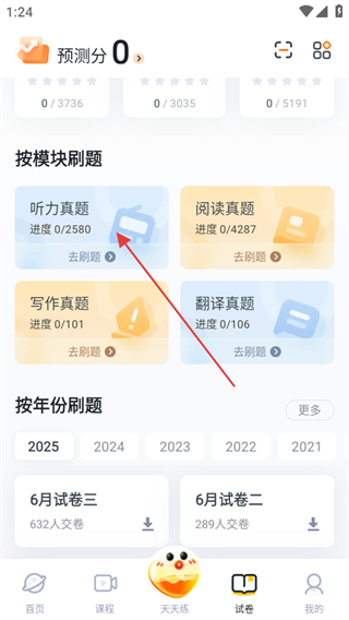 2、在試卷頁面中,找到按模塊刷題區(qū)域,選擇想要下載試卷的模塊。