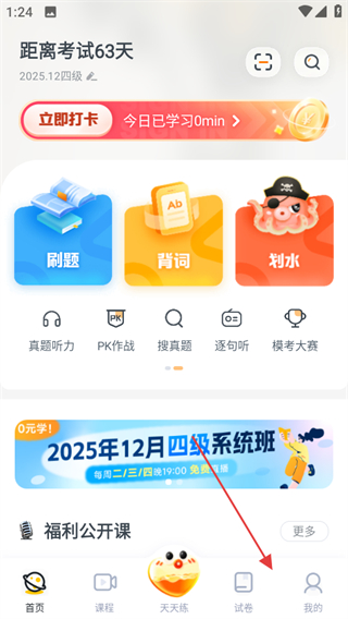 1、打開粉筆四六級APP,進入首頁,點擊底部導(dǎo)航欄中的試卷選項。
