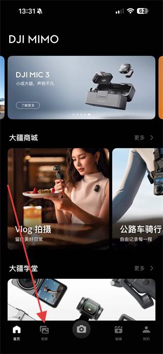 1、打開DJI MIMO應(yīng)用,點(diǎn)擊底部的相冊選項(xiàng)。