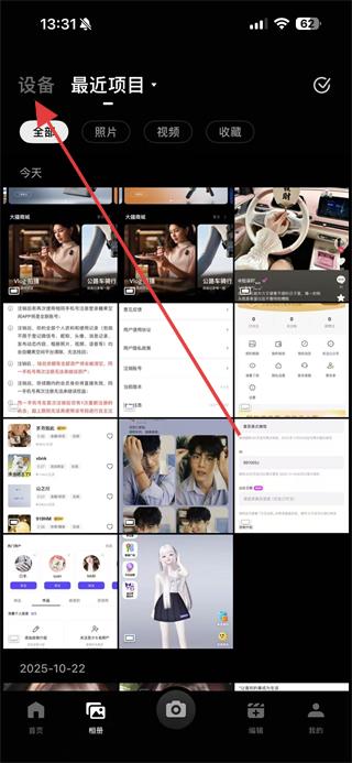 2、在相冊頁面,點(diǎn)擊左上角的設(shè)備選項(xiàng)。