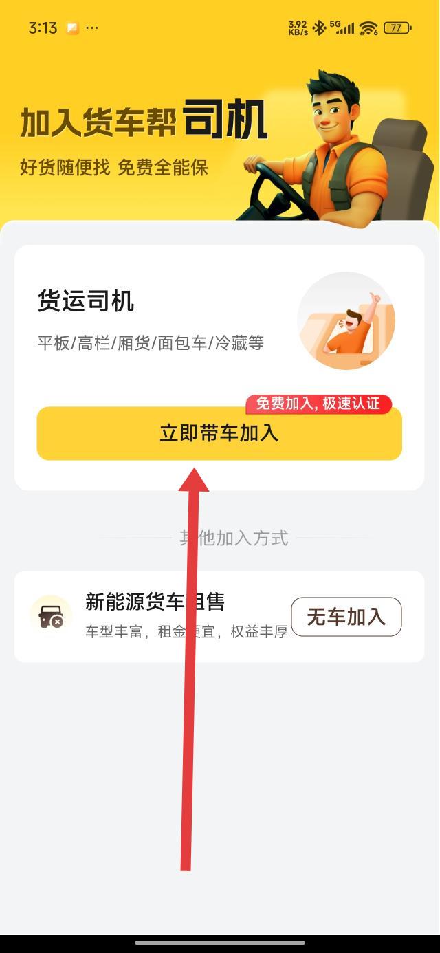 2、進(jìn)入加入頁(yè)面,若有運(yùn)營(yíng)車(chē)輛,可以點(diǎn)擊立即帶車(chē)加入按鈕。