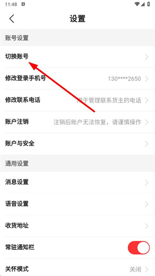 3、在設(shè)置頁(yè)面,點(diǎn)擊切換賬號(hào)選項(xiàng),進(jìn)入切換賬號(hào)登錄頁(yè)面。