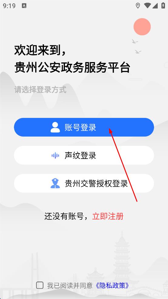 3、在登錄選擇頁面,點(diǎn)擊“賬號(hào)登錄”選項(xiàng),進(jìn)入賬號(hào)登錄界面。