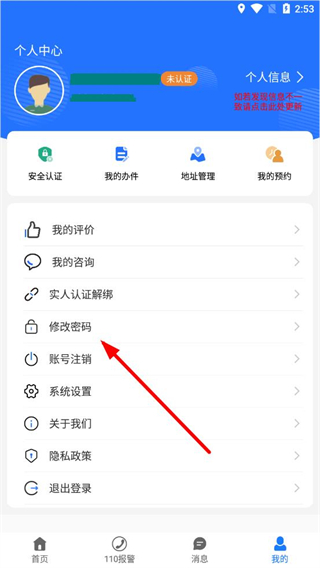 2、在個(gè)人中心頁面,點(diǎn)擊修改密碼選項(xiàng),進(jìn)入修改密碼頁面。