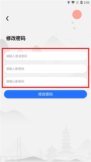 3、在修改密碼頁面,輸入登錄密碼、新密碼并確認(rèn)新密碼。