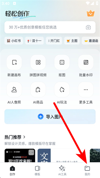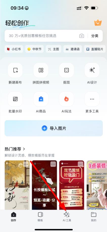 1、打開稿定設計APP,在主界面點擊底部菜單欄中的AI工具選項。