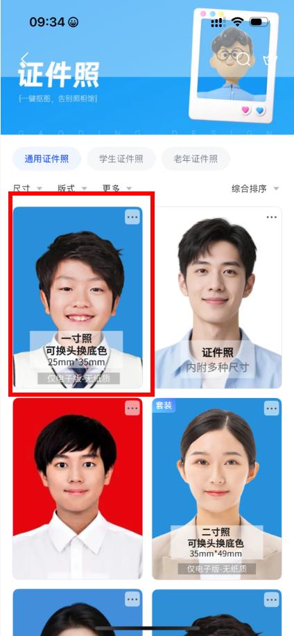 3、在證件照界面選擇合適的證件照尺寸,上傳你需要換底色的照片。