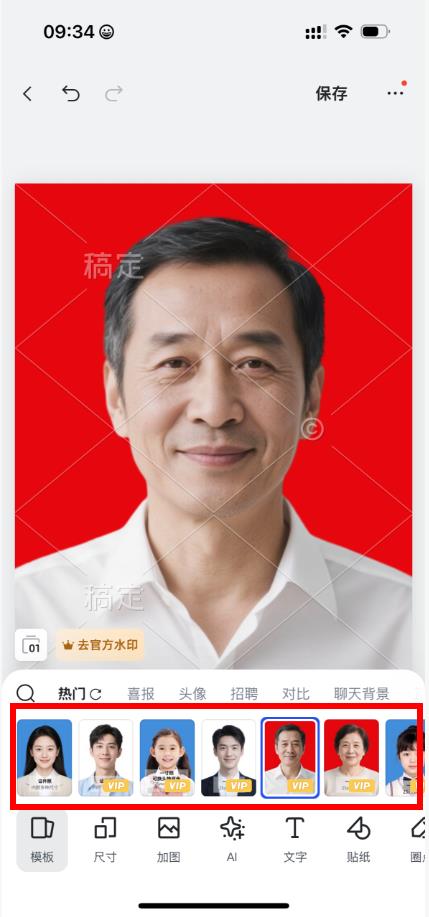 4、照片上傳完成后,在下方的模板、尺寸等功能欄中,找到可更換底色的選項,選擇想要的底色,即可完成證件照底色更換。