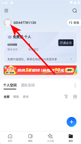 1、打開稿定設計APP,點擊右下角我的,進入個人頁面。